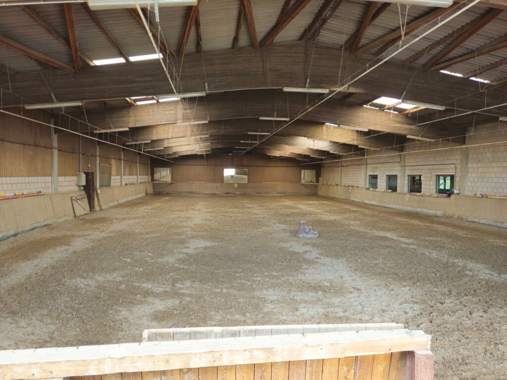 Unsere Reithalle misst 20 x 40m und verfügt über Beleuchtung sowie Beregnung, um zu jeder Zeit ideale Bedingungen zu schaffen für ein gutes gemeinsames Training von Pferd und Reiter.