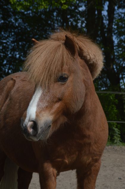 Unser Pony Chicco ist der einzige mit Voltigierausbildung. Er ist motiviert und damit auch vielseitig einsetzbar. Chicco braucht immer ein bisschen Zeit, bis er einem vertraut, doch wenn das einmal so ist, ist er der beste Freund, den man sich nur denken kann. Sobald es aufs Paddock geht, ist er der Erste, der sich in den Sand schmeißt und Fellpflege betreibt. Aber wehe, er sieht eine Pfütze, denn Wasser hasst er, egal in welcher Form.