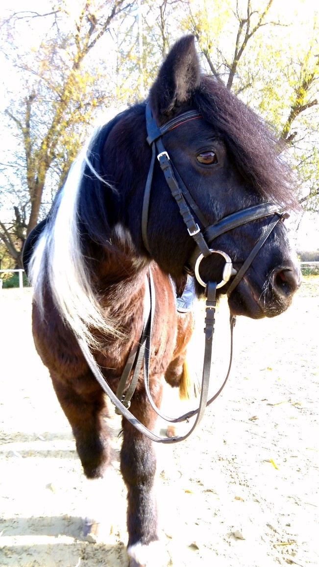 Unser Pony Chicco ist der einzige mit Voltigierausbildung. Er ist motiviert und damit auch vielseitig einsetzbar. Chicco braucht immer ein bisschen Zeit, bis er einem vertraut, doch wenn das einmal so ist, ist er der beste Freund, den man sich nur denken kann. Sobald es aufs Paddock geht, ist er der Erste, der sich in den Sand schmeißt und Fellpflege betreibt. Aber wehe, er sieht eine Pfütze, denn Wasser hasst er, egal in welcher Form.
