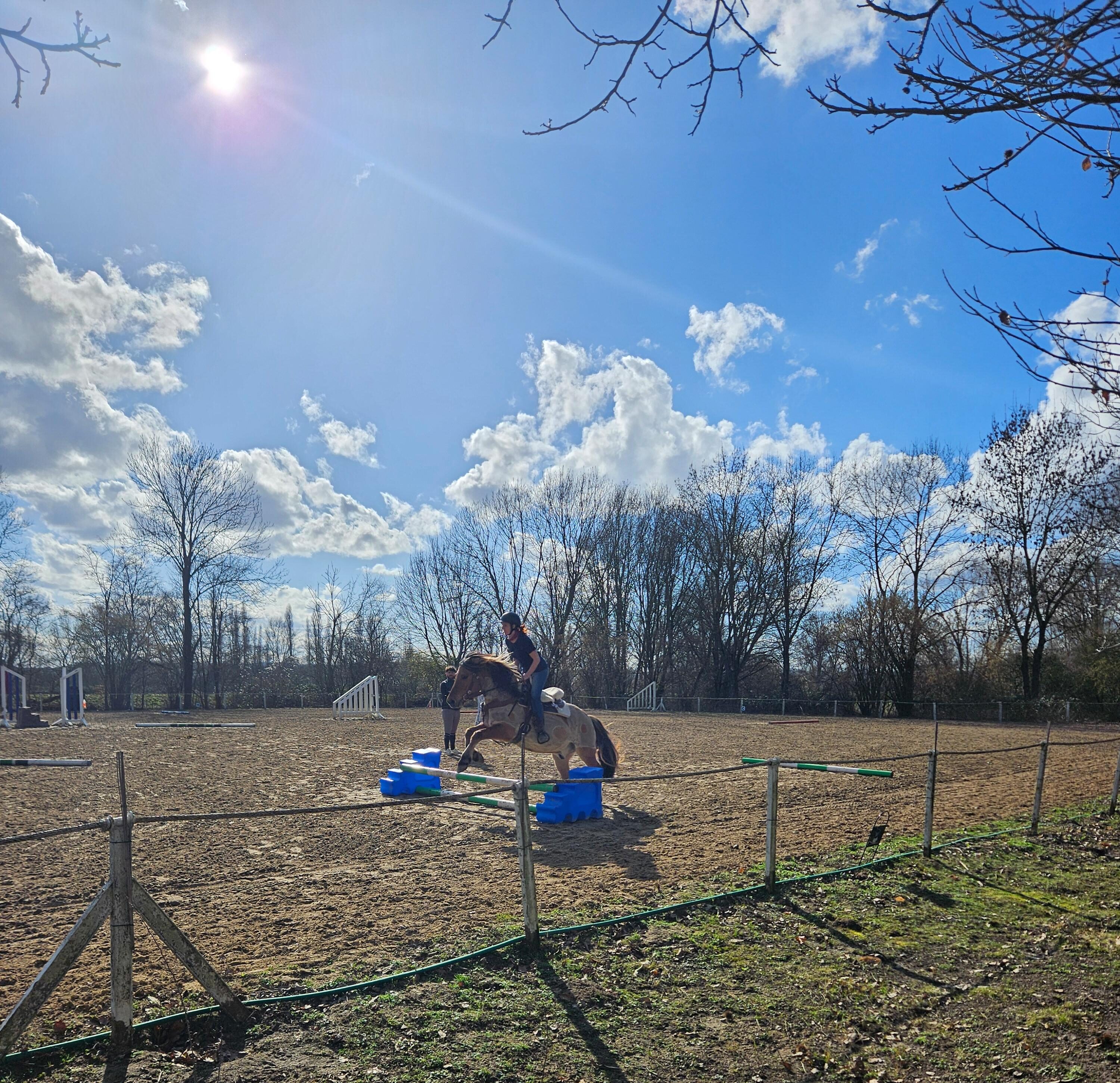 Bei gutem Wetter und passenden Bodenbedingungen findet das Training auf dem großen Springplatz im Außenbereich statt. Wenn die Bedingungen dafür nicht gegeben sind, weichen wir in die Reithalle aus.